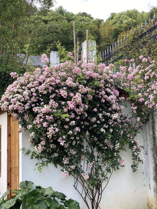 我也来推荐一个大型藤月--群舞,优点:无刺,长势超快,一年就能出效果,花开成群,花色花型淡雅清新,病虫害少,不用怎么打理,类似蔷薇。缺点:一季花。我21年春种的,现在已很壮观,下一个路况晒图。